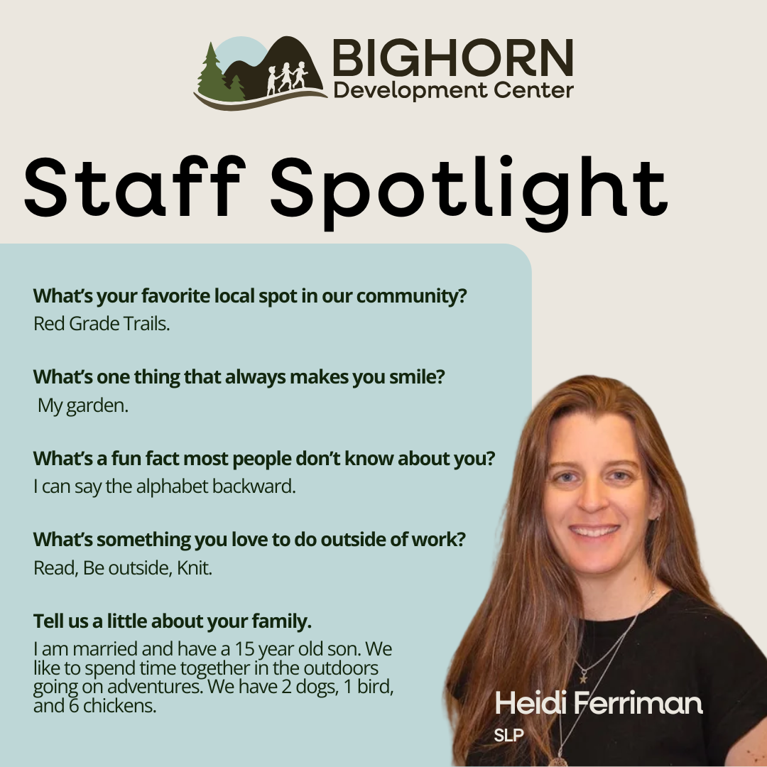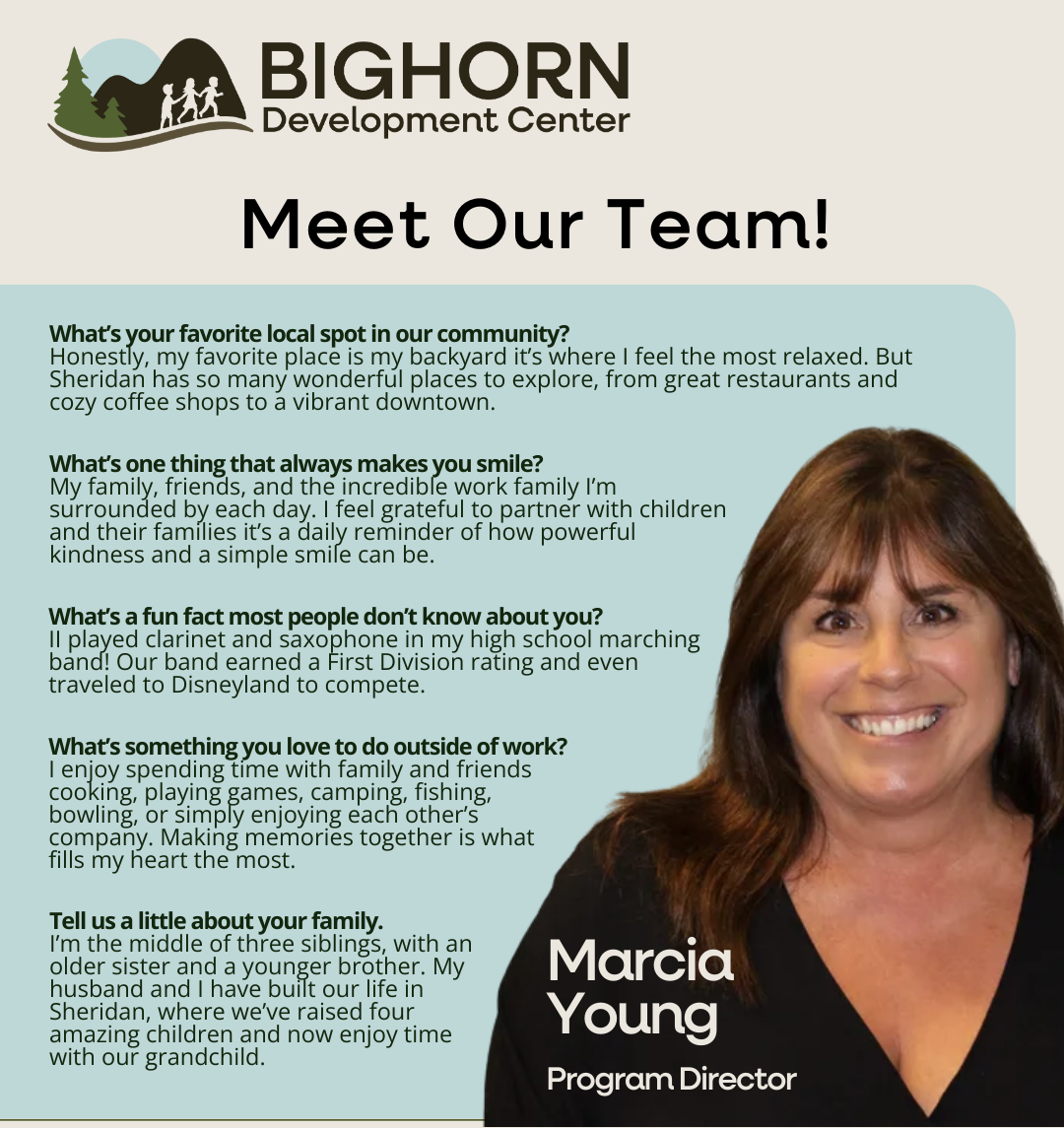 We’re truly grateful for the impact Bighorn Development Center has had on our family. Their presence has been a gift, and we feel fortunate to have such a dedicated and caring resource right here in the heart of the Sheridan community.”